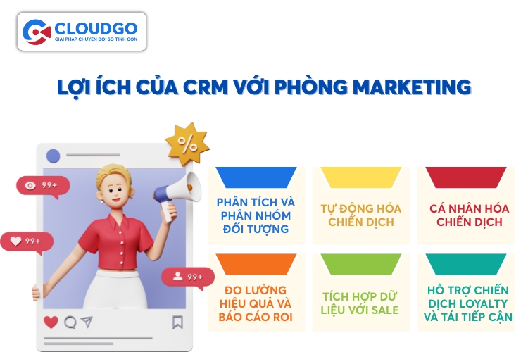 CRM cung cấp dữ liệu hạng nhất về hành vi và nhân khẩu học. Marketing dễ dàng thực hiện Phân khúc khách hàng thành các nhóm nhỏ (VIP, mới mua, lâu không quay lại...),làm cơ sở cho việc thiết kế chiến dịch truyền thông hiệu quả, đúng đối tượng.