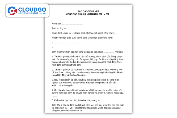 Mẫu báo cáo tổng kết cuối năm dành cho cá nhân