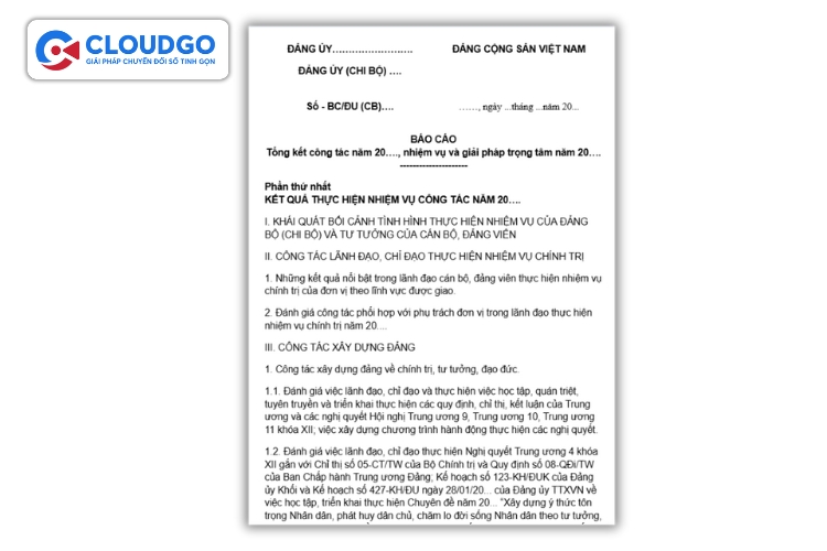 Mẫu báo cáo tổng kết cuối năm dành cho chi bộ