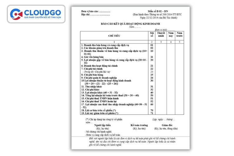 Mẫu báo cáo kết quả hoạt động kinh doanh năm