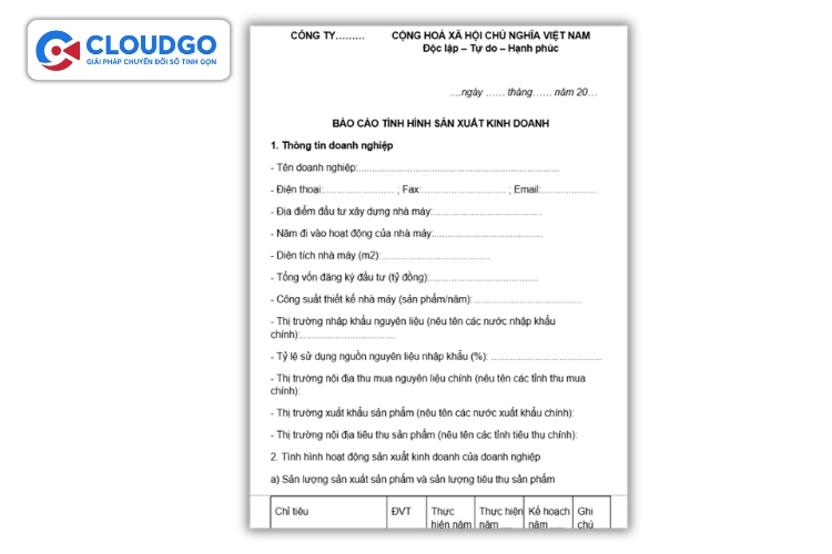 Mẫu báo cáo tổng kết tình hình sản xuất kinh doanh