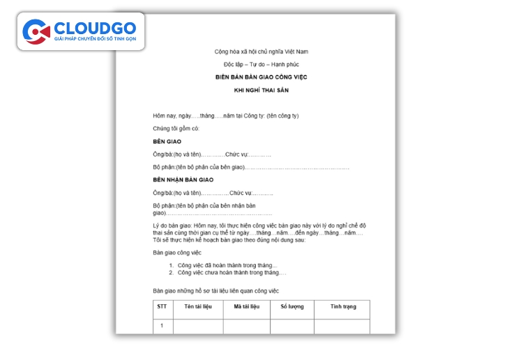 Biên bản bàn giao công việc khi nghỉ thai sản