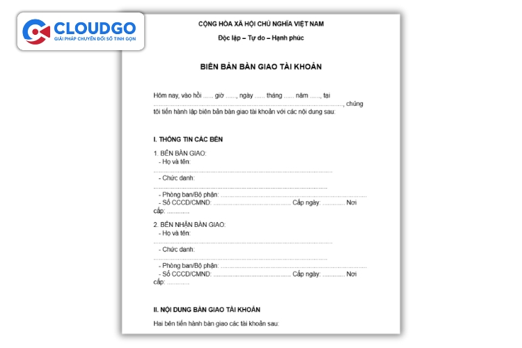 Mẫu biên bản bàn giao tài khoản (email, phần mềm, hệ thống…)