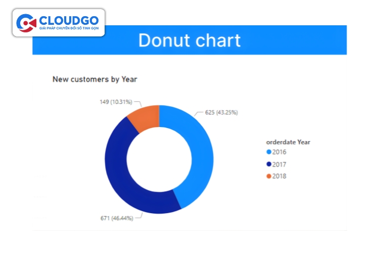 Biểu đồ donut là một biến thể của biểu đồ tròn, nổi bật với một "lỗ hổng" ở giữa, tạo thành hình chiếc bánh donut. Về cơ bản, nó vẫn giữ nguyên chức năng hiển thị tỷ lệ phần trăm đóng góp của các phân nhóm vào tổng doanh thu, tương tự biểu đồ tròn. Tuy nhiên, thiết kế có lỗ trống ở giữa mang lại một số ưu điểm. Thứ nhất, nó tăng tính thẩm mỹ, hiện đại hơn. Thứ hai, lỗ trống này có thể được sử dụng để hiển thị các thông tin tổng quát quan trọng (ví dụ: tổng doanh thu, tổng số lượng giao dịch) hoặc nhãn thông tin, giúp người xem dễ dàng nắm bắt bức tranh toàn cảnh mà không cần phải nhìn vào chú giải. Ví dụ, bạn có thể dùng biểu đồ donut để minh họa tỷ trọng doanh thu theo nhóm sản phẩm, đồng thời hiển thị tổng doanh thu toàn ngành ở giữa.