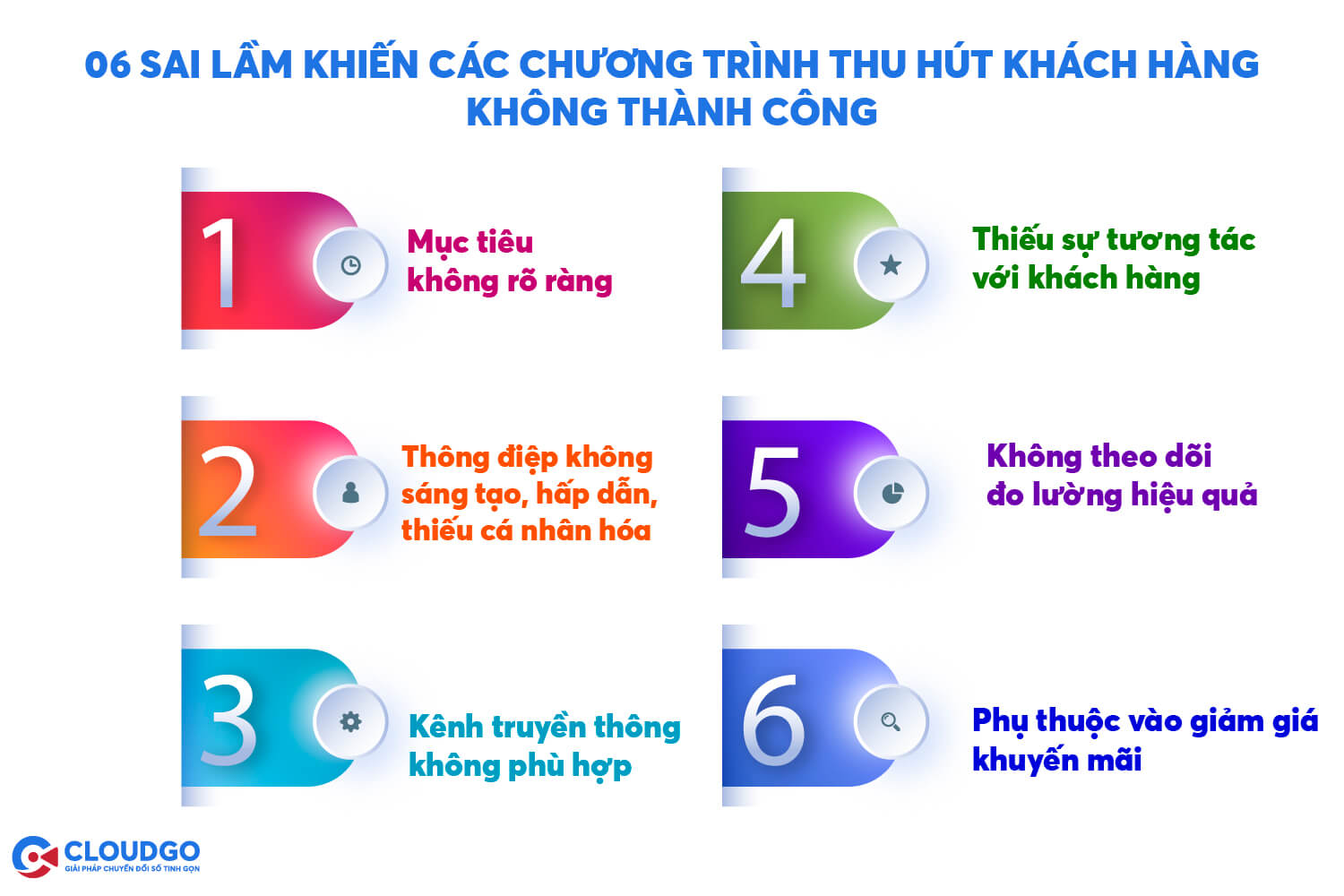 Trong bài viết này, CloudGO sẽ tổng hợp về những sai lầm phổ biến và cách khắc phục chúng để đảm bảo sự thành công cho chương trình thu hút khách hàng của doanh nghiệp.