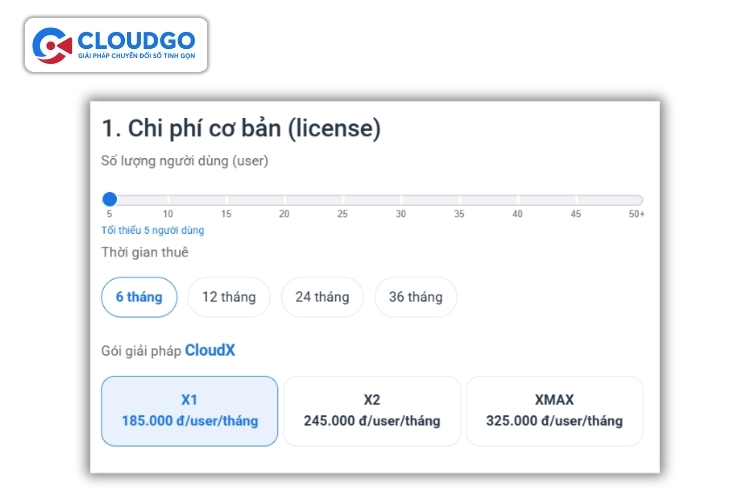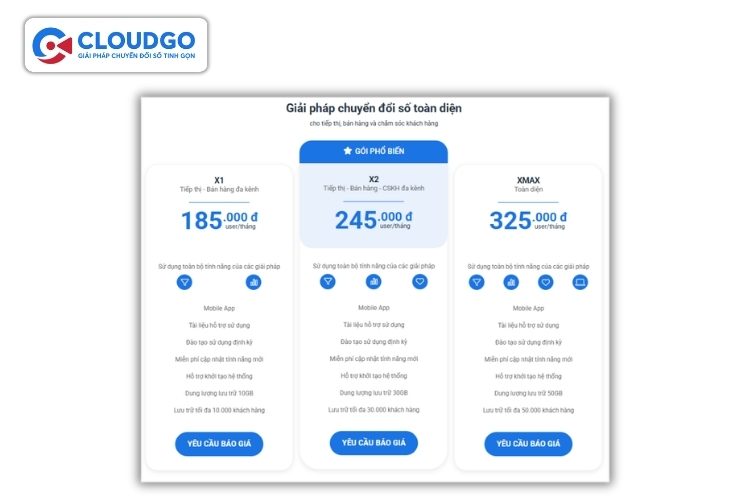 Với CloudGO, chi phí CRM cho trung tâm đào tạo có thể bắt đầu chỉ từ 325.000đ/user/tháng với gói XMAX (Toàn diện),mang lại giải pháp tối ưu hóa chi phí mà vẫn đảm bảo đầy đủ tính năng cần thiết cho doanh nghiệp vừa và nhỏ tại Việt Nam. Để có cái nhìn rõ ràng hơn về khoản đầu tư này, chúng ta sẽ cùng tìm hiểu cách ước tính chi phí CRM cho trung tâm đào tạo. Ví dụ minh họa: