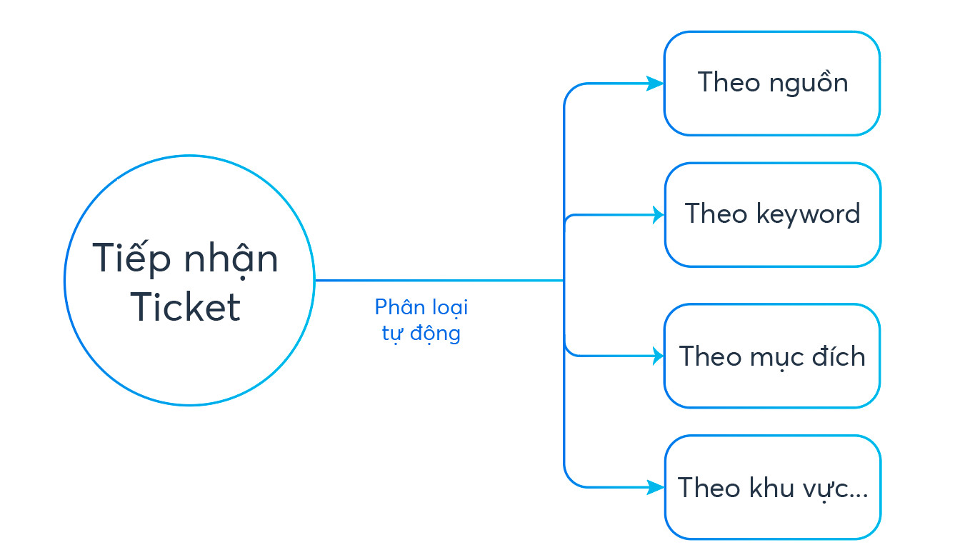 Hệ thống tự động tập hợp yêu cầu từ mọi kênh (Email, Zalo, Hotline...) về một nơi. Sau đó, CloudCARE tự động phân loại theo từ khóa, nguồn hoặc khu vực để gán ngay cho bộ phận chuyên trách xử lý.