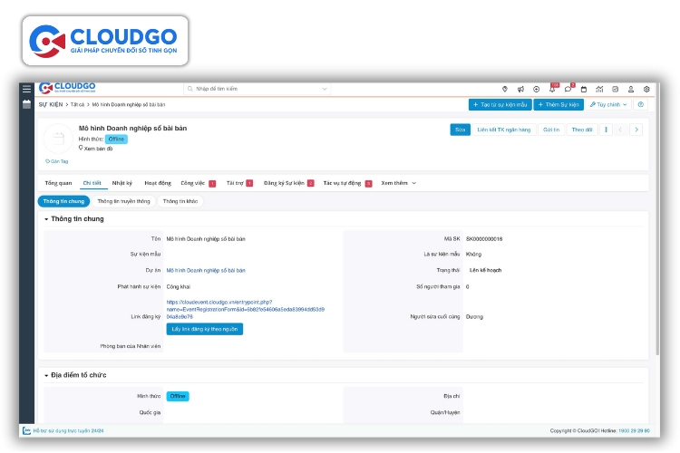 CloudEvent là một module hoàn toàn mới, được tích hợp liền mạch vào các sản phẩm khác của CloudGO, mang đến cho doanh nghiệp một công cụ toàn diện để tổ chức, theo dõi và phân tích hiệu quả sự kiện. Với CloudEvent, bộ phận Marketing và Bán hàng có thể: