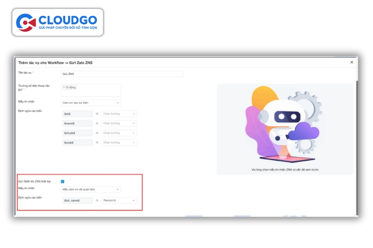 Cải tiến Workflow gửi ZNS