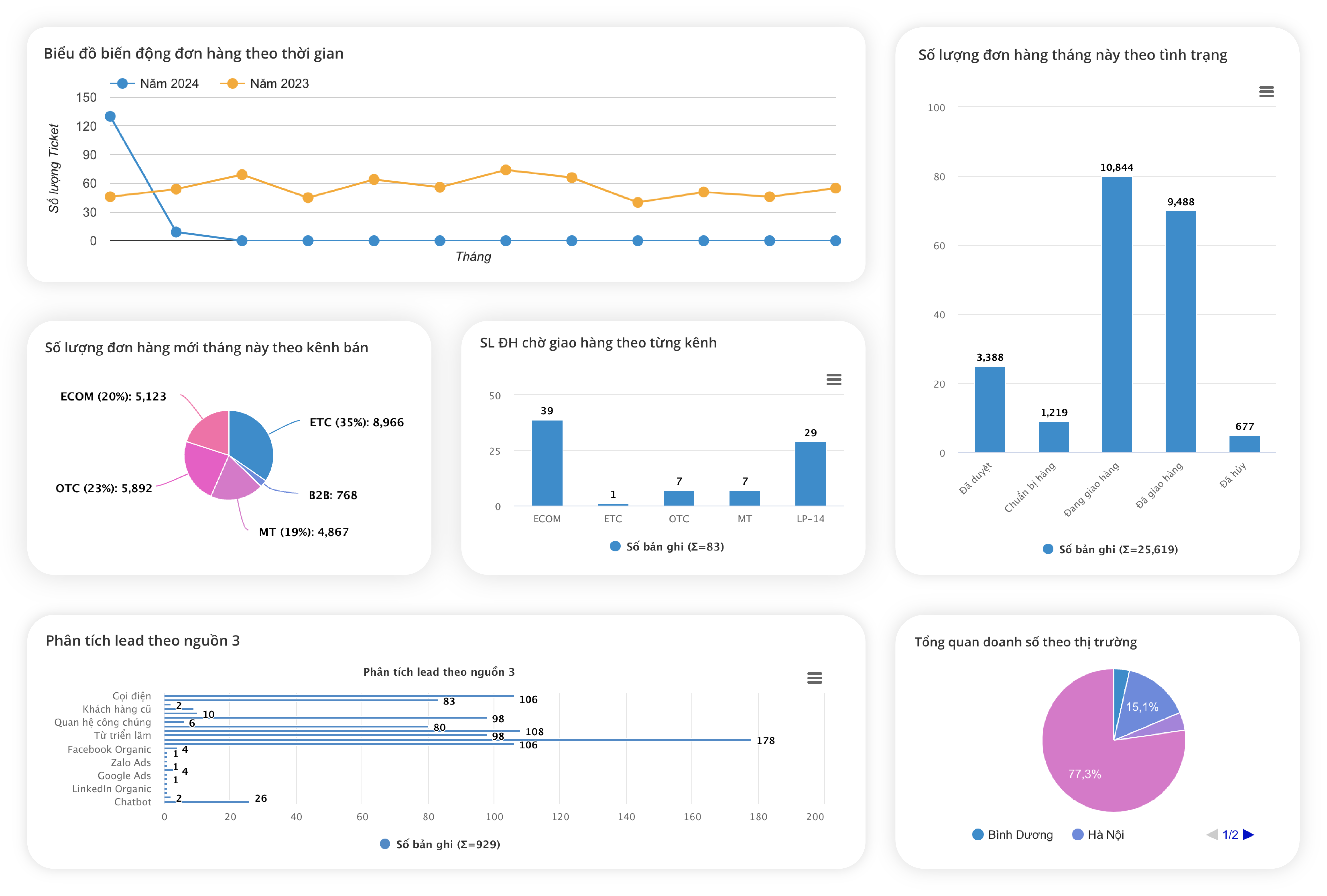 • Dashboard theo dõi báo cáo tập trung, nắm bắt tình hình kinh doanh nhanh chóng