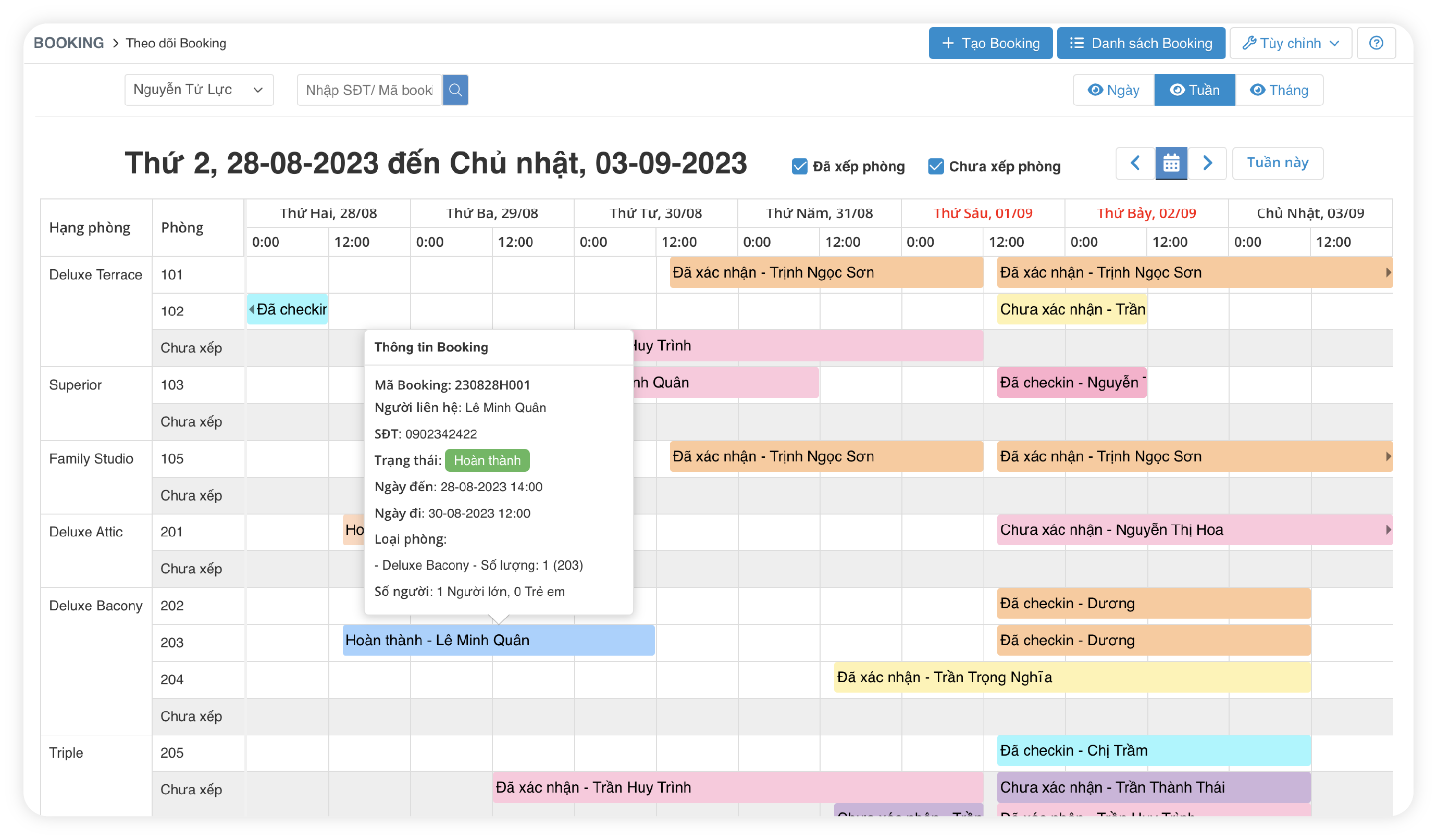 • Ghi nhật Đặt phòng, sắp xếp lịch trên giao diện khoa học