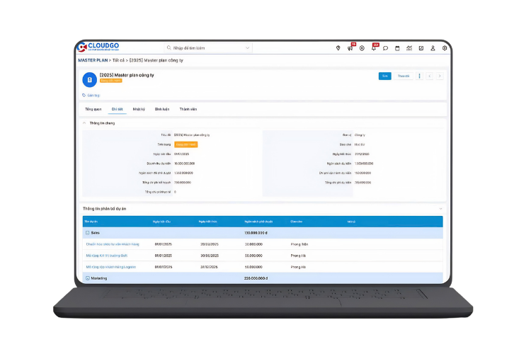 - Hoạch định Kế hoạch tổng thể: Lên kế hoạch toàn bộ dự án trong năm theo từng bộ phận kèm ngân sách dự trù kiểm soát mọi thứ doanh nghiệp sẽ làm chỉ trên một màn hình.