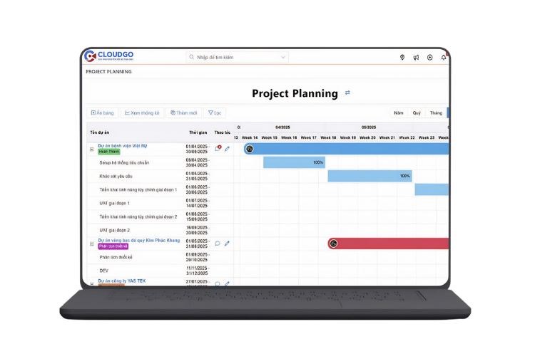 Quản lý toàn diện vòng đời dự án phần mềm từ hoạch định mục tiêu, phân bổ nguồn lực đến giao-nhận-thực thi và đánh giá kết quả trên một hệ thống duy nhất.