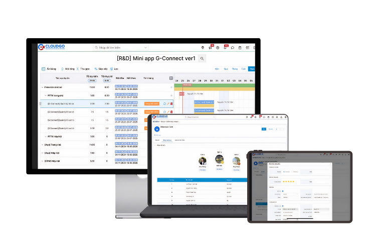 - Thực thi, Kiểm soát & Gắn kết đội ngũ: Backlog, To-do list, Logtime và Báo cáo hoàn thành giúp quản lý toàn trình công việc hàng ngày không còn báo cáo qua email hay Zalo. Project Board theo dõi tiến độ thực tế vs. kế hoạch, nhận diện kịp thời hạng mục trễ deadline.