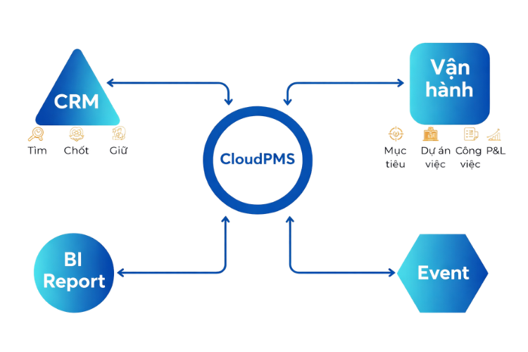 Jira/Trello chỉ quản lý công việc và dự án. CloudPMS là nền tảng hợp nhất: CRM bán hàng + quản lý dự án + KPI nhân sự + P&L tài chính được xây riêng cho đặc thù công ty phần mềm Việt Nam. Không cần tích hợp nhiều công cụ rời rạc.