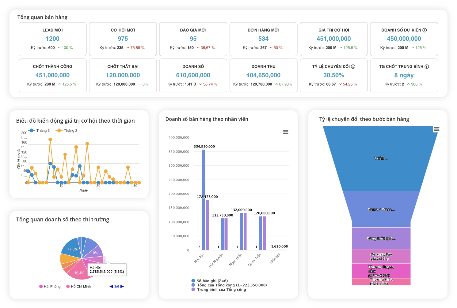 Cung cấp cái nhìn toàn cảnh về hiệu suất kinh doanh thông qua dữ liệu trực quan được cập nhật liên tục.