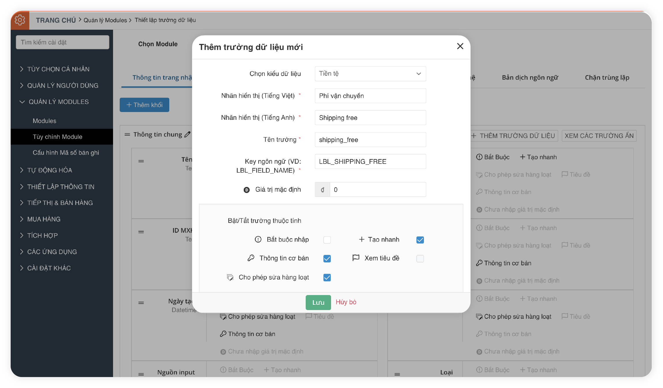 Cho phép doanh nghiệp tự điều chỉnh hệ thống theo đặc thù riêng mà không cần biết lập trình hay can thiệp vào mã nguồn.