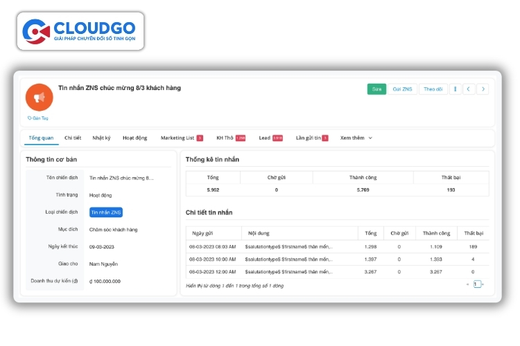 Tất cả 6 lợi ích kể trên đều có thể được hiện thực hóa trên một nền tảng duy nhất: CloudGOLF — giải pháp CRM chuyên biệt cho ngành golf từ CloudGO, được xây dựng dựa trên 15 năm kinh nghiệm triển khai thực tế cho hơn 2.500 doanh nghiệp Việt Nam.