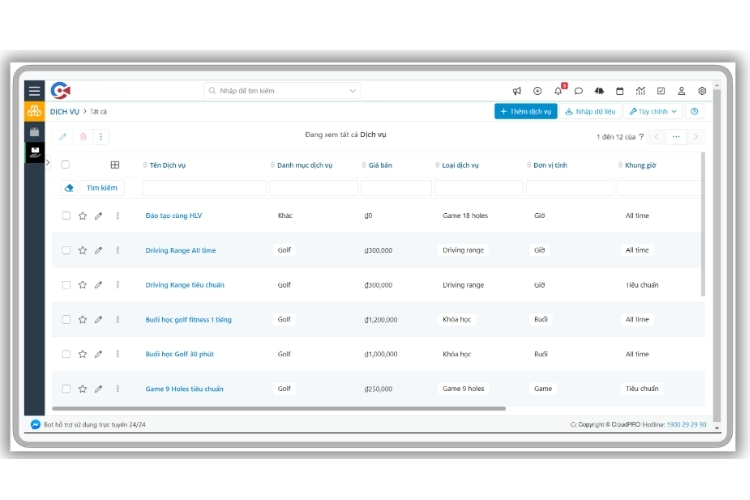 Quản lý dịch vụ và bán hàng tại sân golf