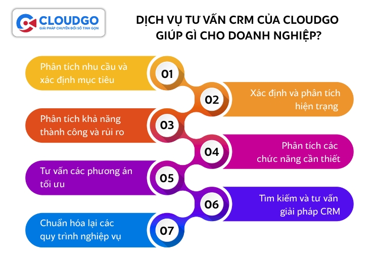 Dịch vụ tư vấn CRM của CloudGO sẽ hỗ trợ doanh nghiệp trong các vấn đề sau: