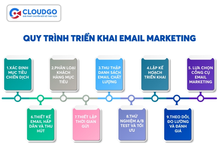 Quy trình triển khai Email Marketing bao gồm 9 bước