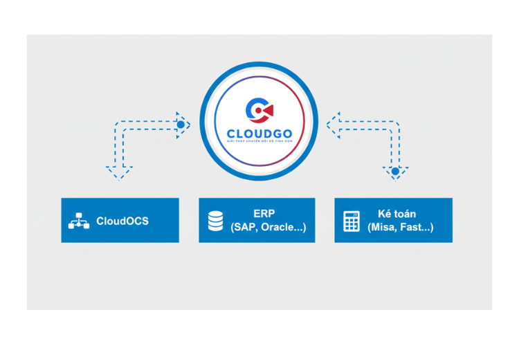 CloudOCS kết nối liền mạch với hệ thống hiện có (ERP, Kế toán...) nhờ Kiến trúc API-first, tích hợp hai chiều, sẵn sàng đáp ứng quy mô tăng trưởng.