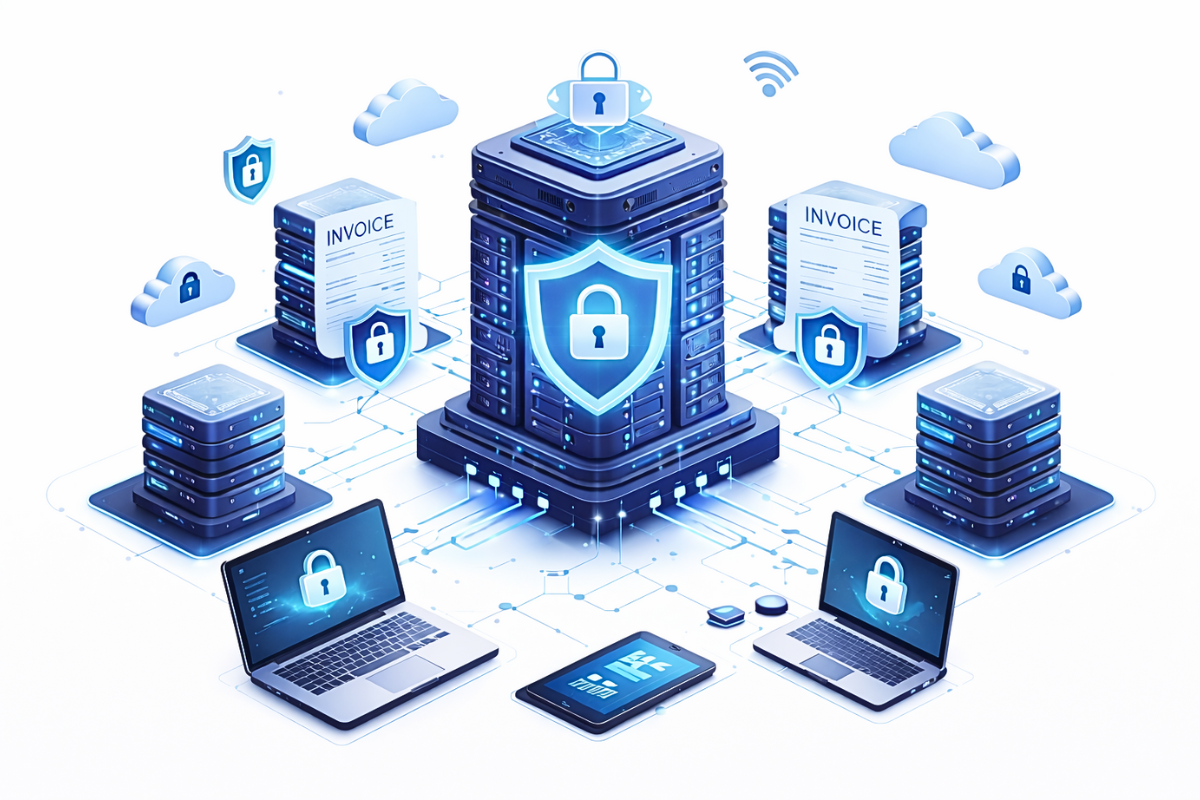 Giải pháp thiết lập hệ thống phòng thủ nhiều lớp giúp bảo vệ dữ liệu doanh nghiệp an toàn trước mọi rủi ro tấn công và thất thoát. Hệ thống đảm bảo tính toàn vẹn của hóa đơn thông qua quy trình kiểm soát nghiêm ngặt và giám sát liên tục.