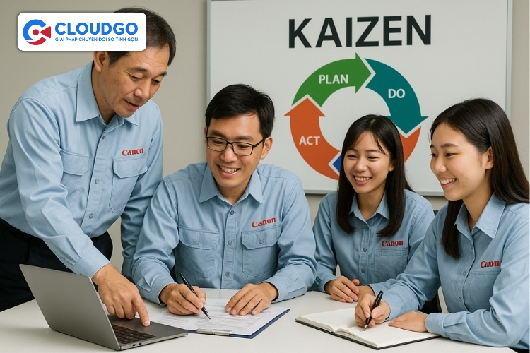 Một ví dụ khác là Canon, nơi chương trình “Suggestion System” được triển khai từ năm 1965 để khuyến khích mọi nhân viên đóng góp ý tưởng cải tiến. Đến năm 2020, Canon đã nhận hơn 450.000 đề xuất từ các nhà máy tại Nhật Bản. Một cải tiến nhỏ như thay đổi cách đặt khay mực giúp công nhân tiết kiệm 3 giây mỗi sản phẩm công nghệ, nhưng với quy mô sản xuất hàng triệu đơn vị, Canon đã tiết kiệm được hàng tỷ yên mỗi năm nhờ áp dụng mô hình quản lý dự án. Những câu chuyện này cho thấy sức mạnh của Kaizen trong việc tạo ra giá trị từ những bước cải tiến nhỏ nhưng đều đặn.