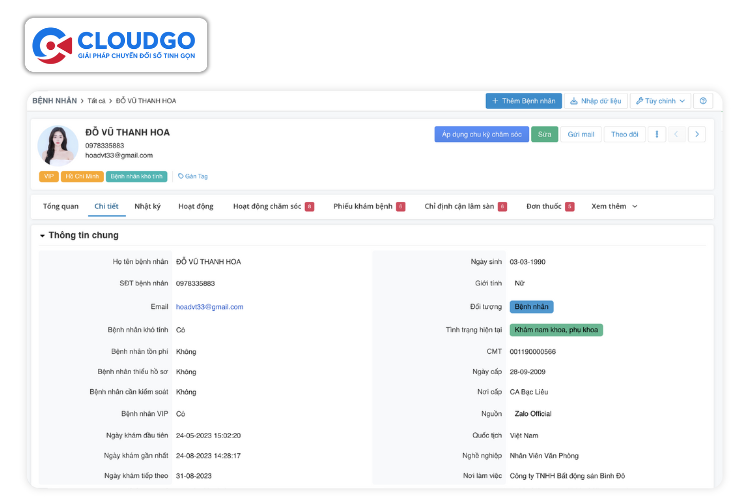 CRM không còn đơn thuần là một phần mềm quản lý mà còn là một chiến lược toàn diện, định hình lại cách các cơ sở y tế tương tác và chăm sóc bệnh nhân. 9 Lợi ích CRM trong quản lý bệnh nhân & tái khám ở trên đã cho thấy rõ ràng việc đầu tư vào hệ thống CRM chính là đầu tư cho sự phát triển vững mạnh của bất kỳ phòng khám, bệnh viện nào trong bối cảnh hiện đại. Đừng ngần ngại tìm hiểu và áp dụng giải pháp CRM chuyên biệt để nâng cao trải nghiệm bệnh nhân và tạo đà phát triển bền vững cho phòng khám của bạn ngay hôm nay. CloudGO sẵn lòng đồng hành cùng doanh nghiệp bạn trong hành trình chuyển đổi số này.