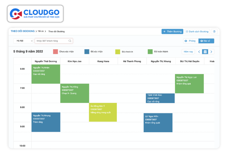 - Đồng bộ lịch hẹn từ mọi nguồn (Website, App, Zalo OA, Fanpage) về một nền tảng.