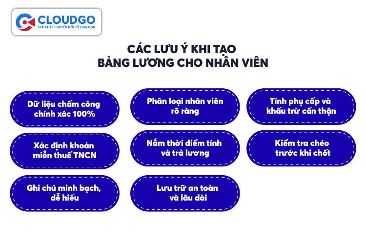 5. Các lưu ý khi tạo bảng lương cho nhân viên