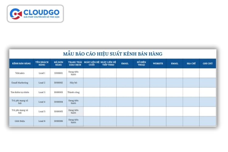 Để giúp các phòng kinh doanh có thể nhanh chóng bắt tay vào việc quản lý và phân tích doanh thu, CloudGO đã tổng hợp 10 mẫu báo cáo doanh thu bằng Excel phổ biến và hiệu quả nhất. Các mẫu này được thiết kế để phù hợp với nhiều nhu cầu phân tích khác nhau của người dùng: