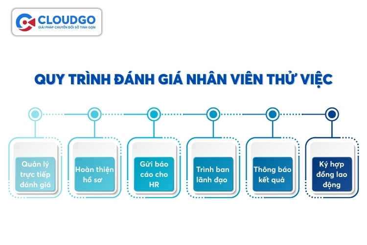 Một quy trình đánh giá nhân viên thử việc rõ ràng, từng bước sẽ đảm bảo tính khách quan, minh bạch và hiệu quả. Điều này đặc biệt quan trọng với các SME, giúp chuẩn hóa hoạt động nhân sự và giảm thiểu các rủi ro phát sinh. CloudGO khuyến nghị quy trình 6 bước sau đây: