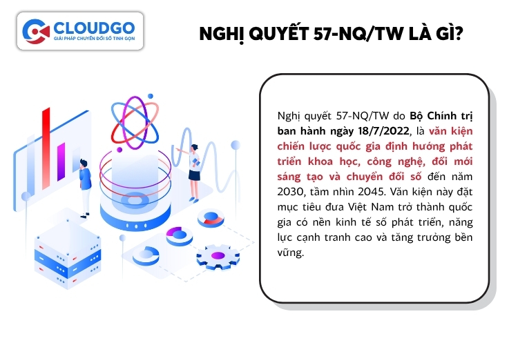 Nghị quyết 57-NQ/TW do Bộ Chính trị ban hành ngày 18/7/2022, là văn kiện chiến lược quốc gia định hướng phát triển khoa học, công nghệ, đổi mới sáng tạo và chuyển đổi số đến năm 2030, tầm nhìn 2045. Văn kiện này đặt mục tiêu đưa Việt Nam trở thành quốc gia có nền kinh tế số phát triển, năng lực cạnh tranh cao và tăng trưởng bền vững.