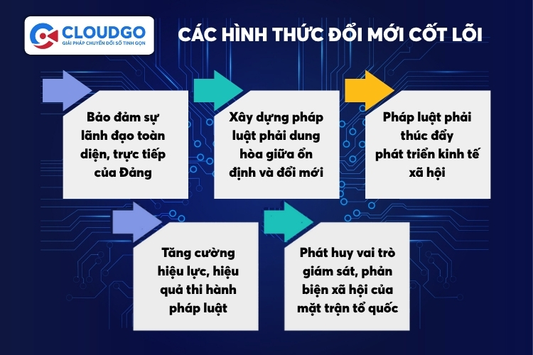 - Đổi mới công tác quản lý nhà nước về xây dựng pháp luật, tăng cường ứng dụng công nghệ thông tin trong xây dựng, thi hành pháp luật nhằm nâng cao hiệu quả, minh bạch.