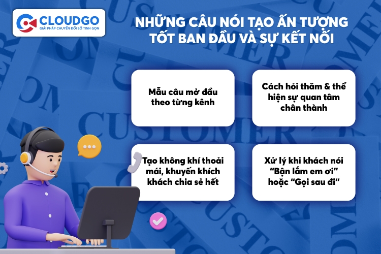 Với hơn 15 năm đồng hành cùng doanh nghiệp Việt, CloudGO gửi đến bạn bộ mẫu câu chăm sóc khách hàng chuẩn chỉnh, dễ áp dụng giúp biến giao tiếp thành vũ khí cạnh tranh, xây dựng lòng trung thành vững bền cho doanh nghiệp.