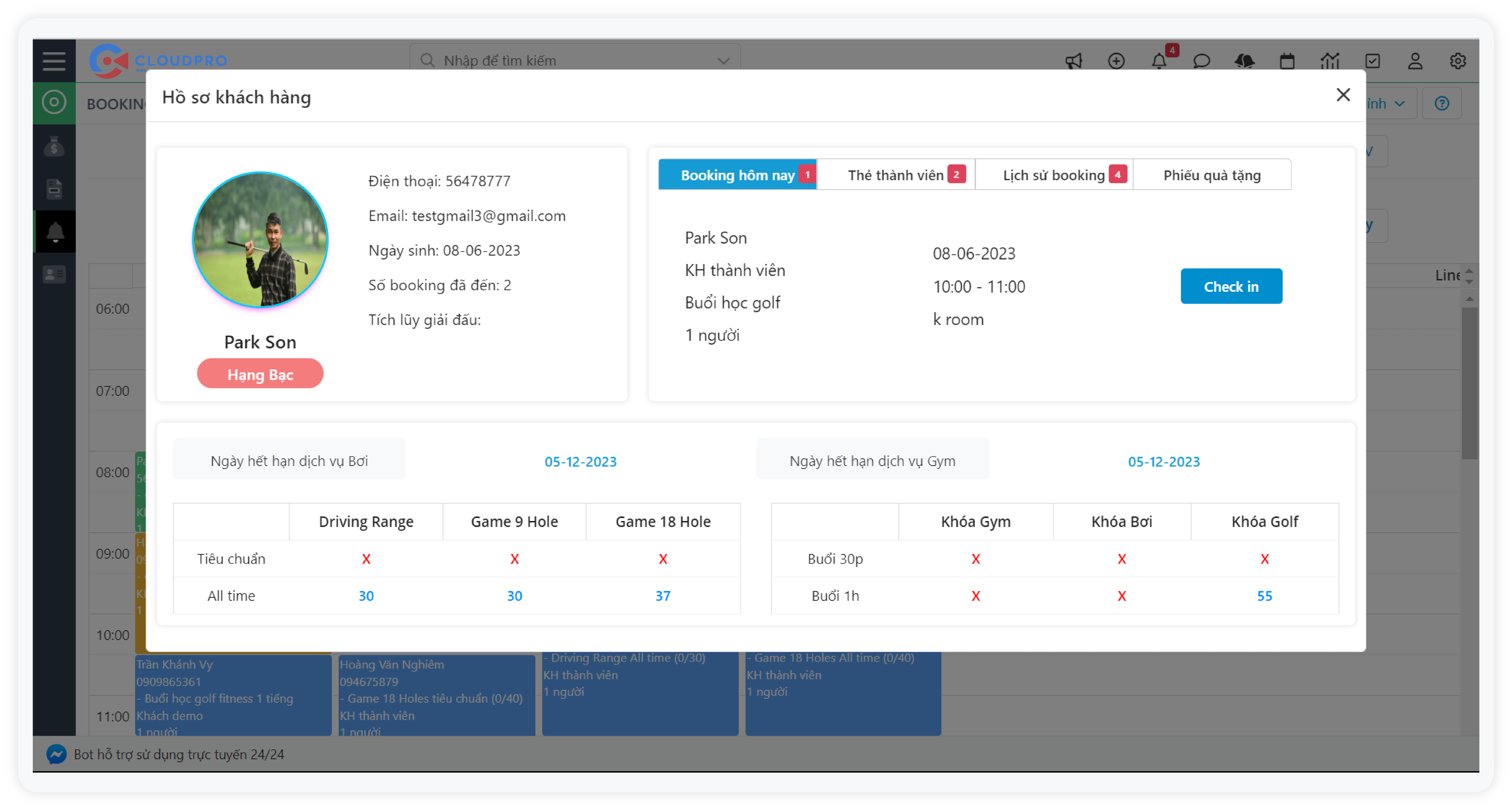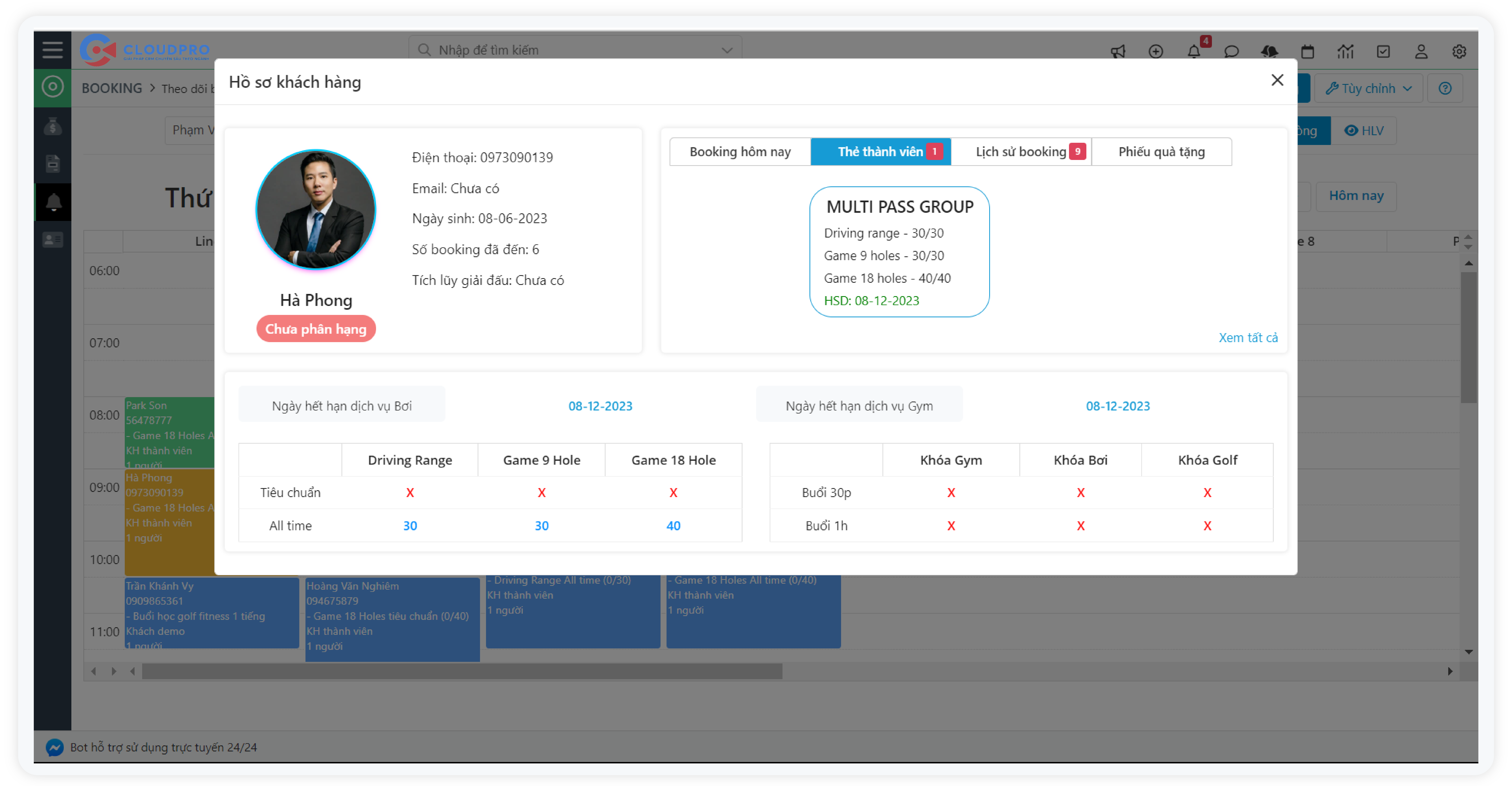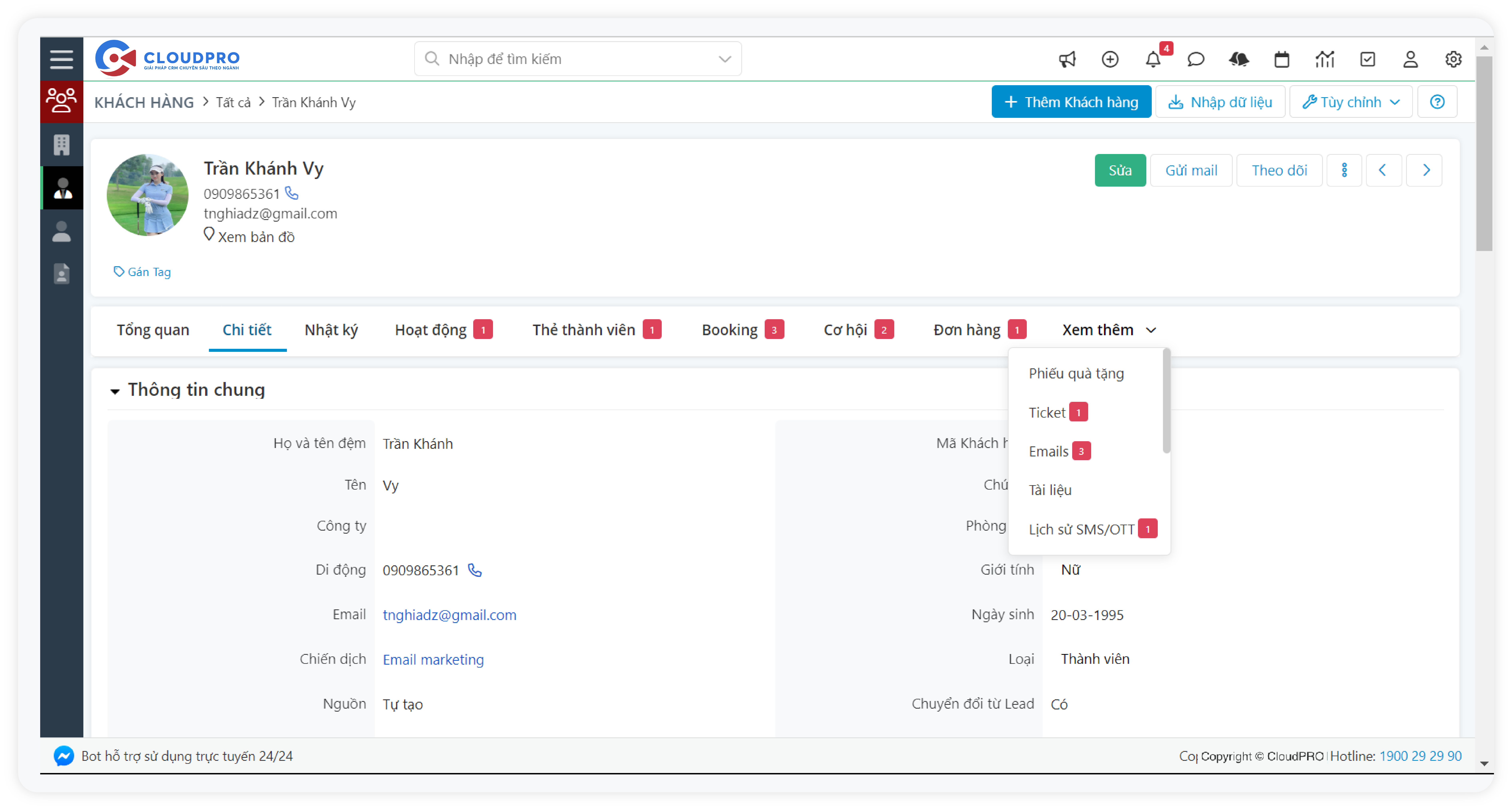 Cung cấp chân dung khách hàng toàn diện: thông tin liên hệ, lịch sử chăm sóc, lịch sử booking, thẻ hội viên, tài nguyên…
