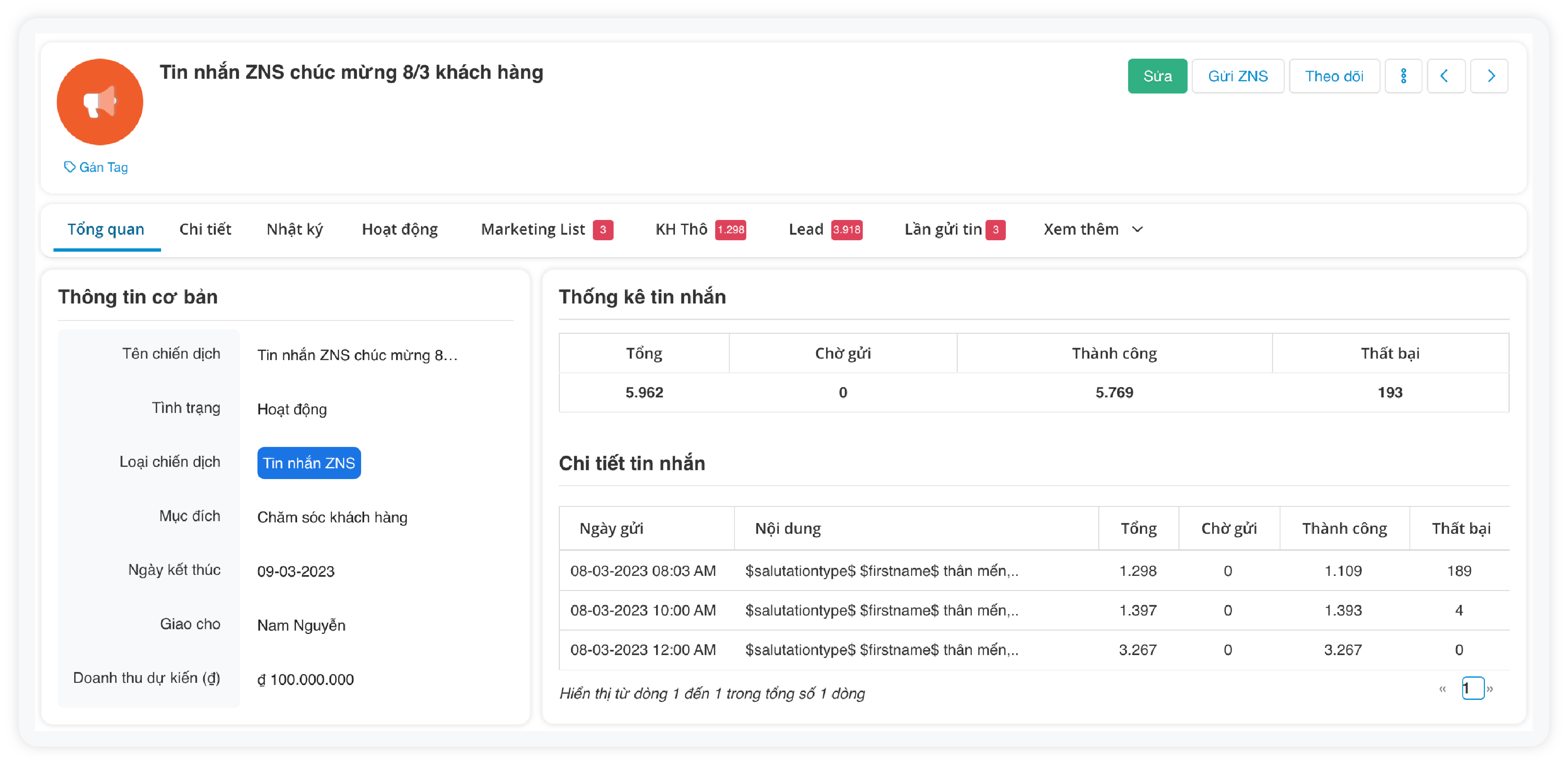 Tích hợp SMS Brandname, ZNS hỗ trợ gửi tin nhắn marketing, chăm sóc khách hàng trên CRM