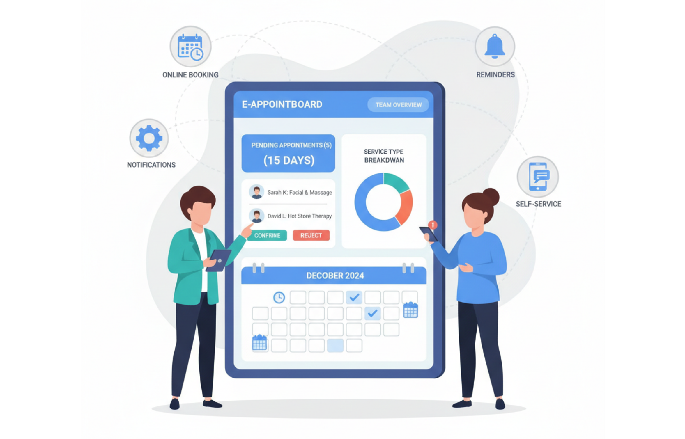 Hệ thống số hóa quy trình đặt lịch theo chi nhánh, bác sĩ và kỹ thuật viên, đồng thời tự động hóa việc xác nhận lịch hẹn cho khách. CloudSPA còn quản lý chặt chẽ danh mục sản phẩm và các thẻ liệu trình khách đã mua.