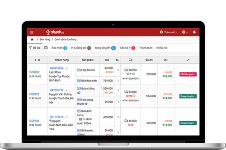- Tích hợp vận chuyển: Tự động kết nối với các đơn vị vận chuyển (GHTK, GHN, Viettel Post...) để đẩy đơn, in phiếu giao hàng và theo dõi tình trạng đơn hàng.