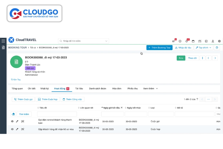 5. CloudTRAVEL giải pháp CRM tích hợp AI hỗ trợ tất cả tác vụ trong ngành Du lịch