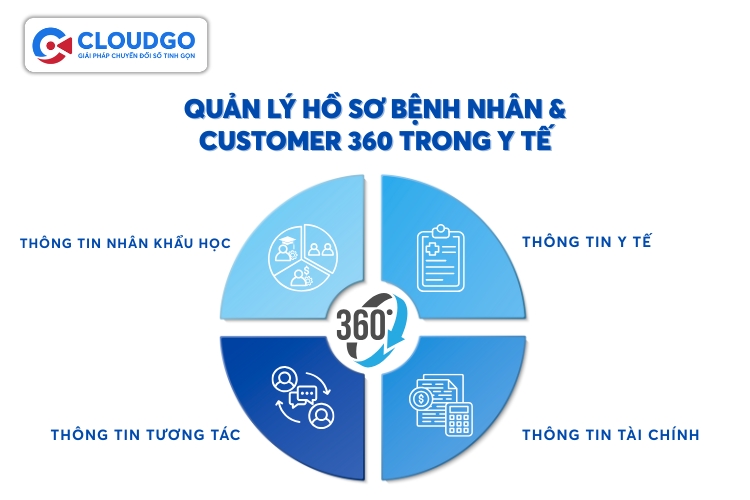 Quản lý Hồ sơ bệnh nhân tập trung vào việc thu thập, lưu trữ và quản lý toàn bộ lịch sử y tế của một người tại cơ sở y tế (dữ liệu lâm sàng) , trong khi Customer 360 (Góc nhìn 360 độ) là một góc nhìn toàn diện , hợp nhất tất cả dữ liệu (bao gồm cả y tế, lịch sử tương tác, phản hồi và hành trình dịch vụ) để mang lại sự cá nhân hóa dịch vụ và chăm sóc.