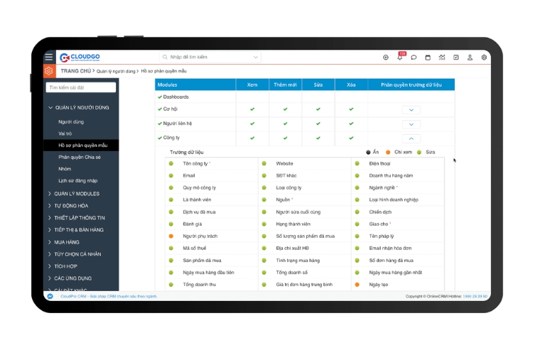 Một trong những tiêu chí mà mọi doanh nghiệp đều quan tâm khi đánh giá một giải pháp CRM tốt chính là khả năng phân quyền và bảo mật. Giải pháp CRM phải có cơ chế phân quyền linh hoạt, chặt chẽ theo từng phòng ban, chức vụ, nhân viên. Điều này giúp mỗi người chỉ truy cập vào đúng quyền hạn của mình giúp dễ dàng quản lý, tránh việc mất mát dữ liệu khi có nhân viên nghỉ việc. Bảo mật dữ dữ liệu tối đa, mã hóa các dữ liệu quan trọng trên phần mềm.