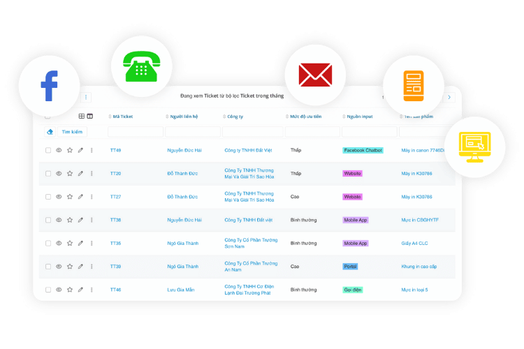 Yêu cầu từ Chat, Email, Webform, gọi điện, Portal bị rời rạc, dễ thất lạc.