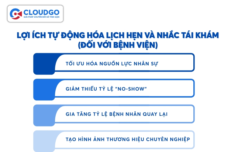 Lợi ích tự động hóa lịch hẹn và nhắc tái khám (đối với bệnh viện)
