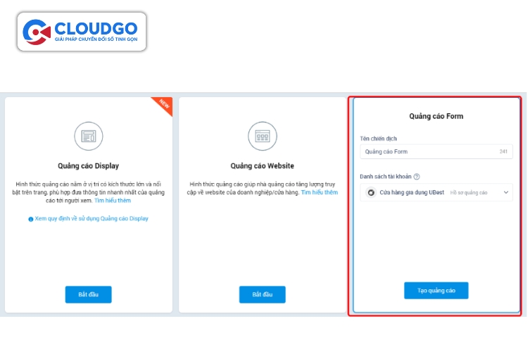 Lưu ý: Nếu chưa có Zalo Official Account (OA),bạn nên tạo trước để dễ dàng triển khai các chiến dịch quảng cáo trên nền tảng này.