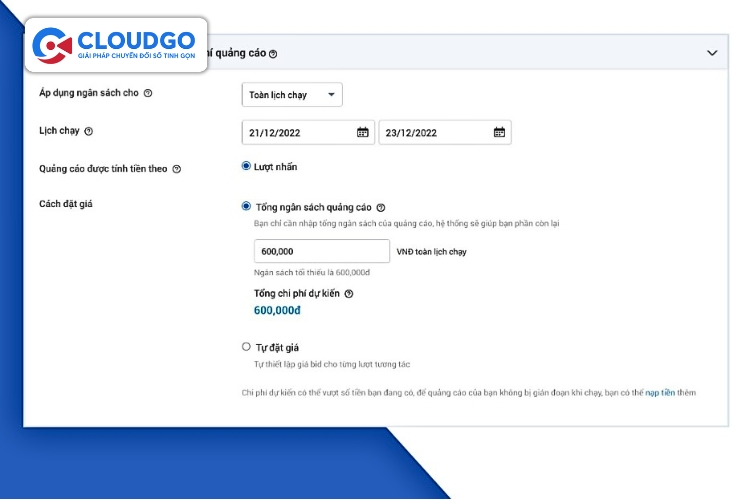 - Ngân sách hàng ngày (tối thiểu từ 50.000 VNĐ/ngày).